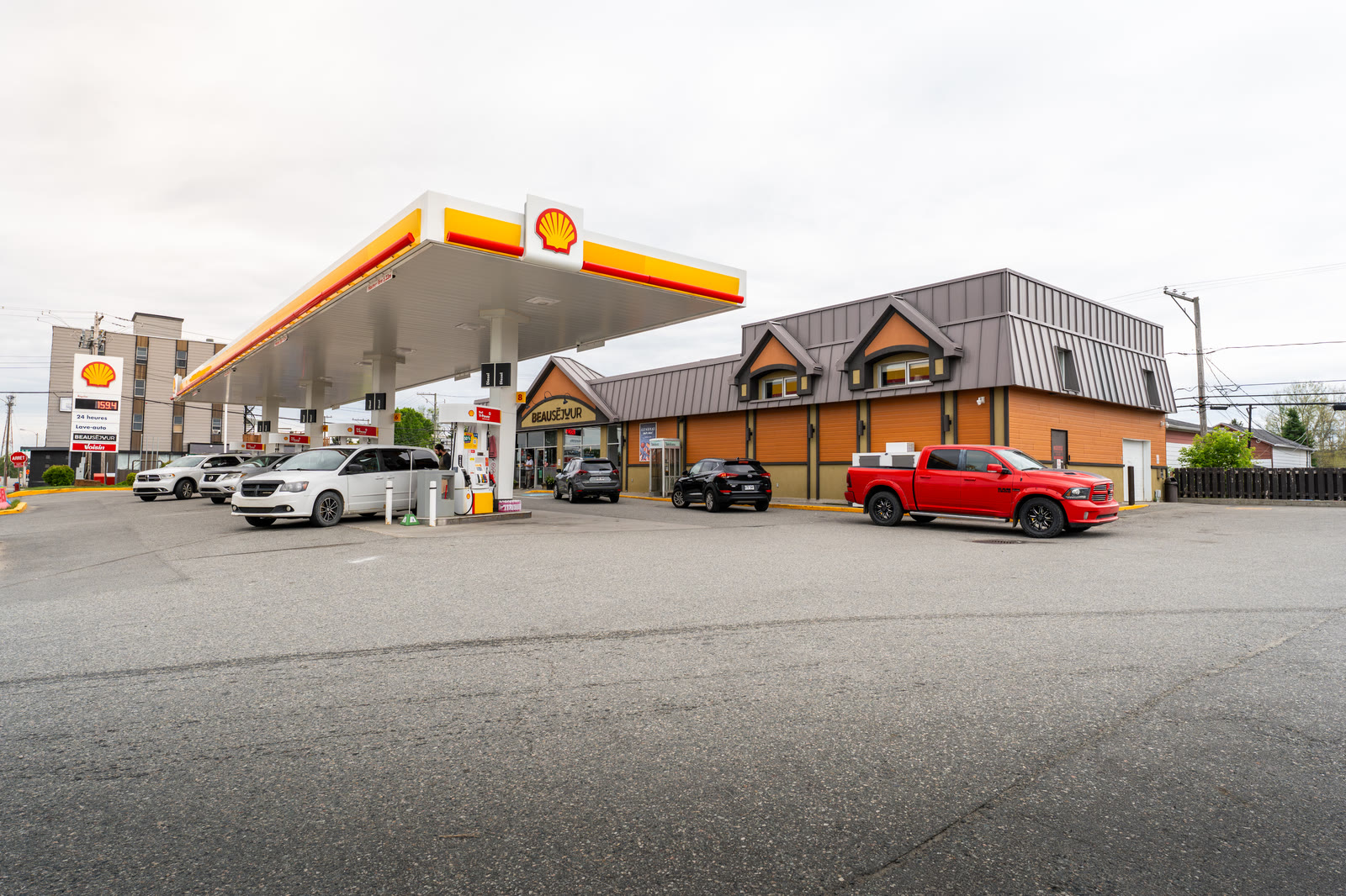 Magasin de proximité ouvert 24 heures sur 24, lave-auto manuel et automatique, prêt-à-manger.